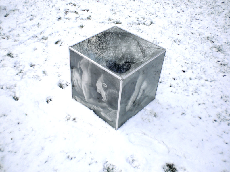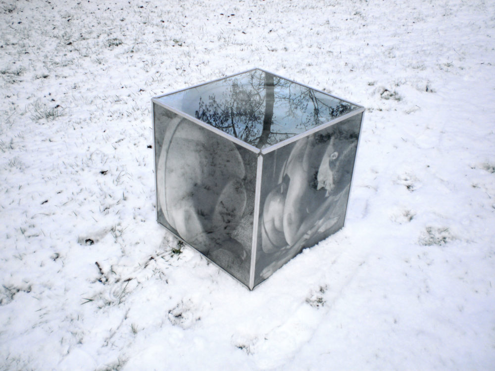 Potlood op papier in plexiglas
