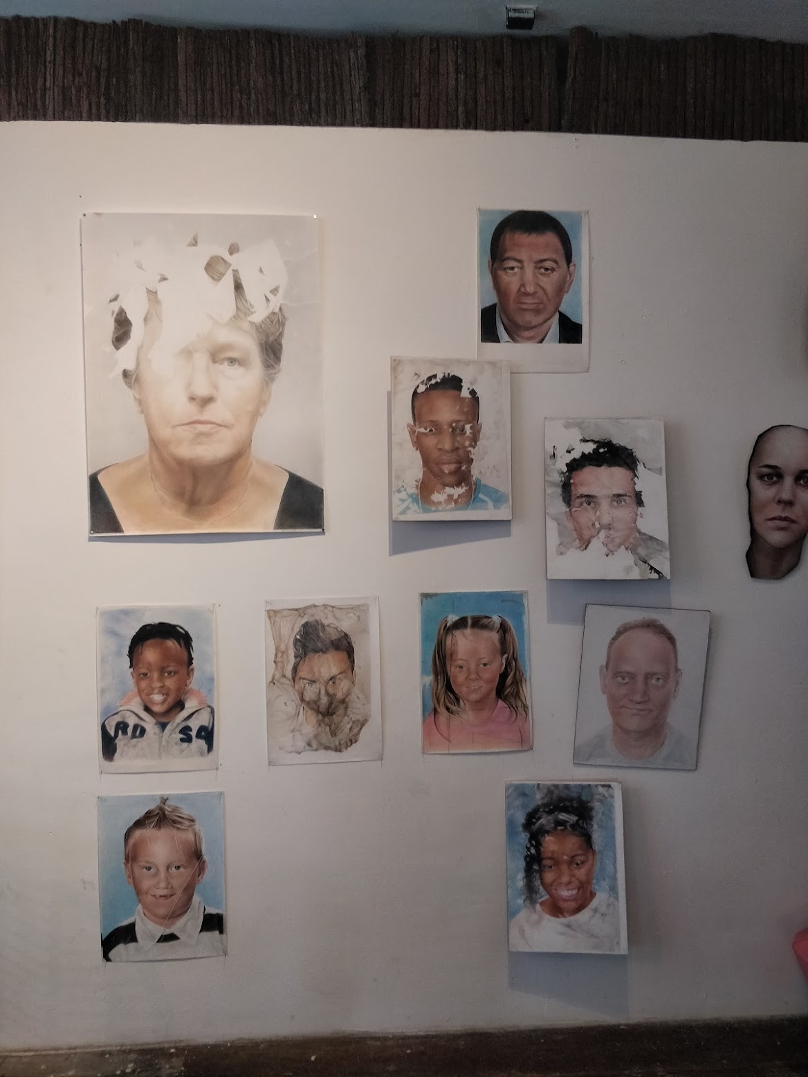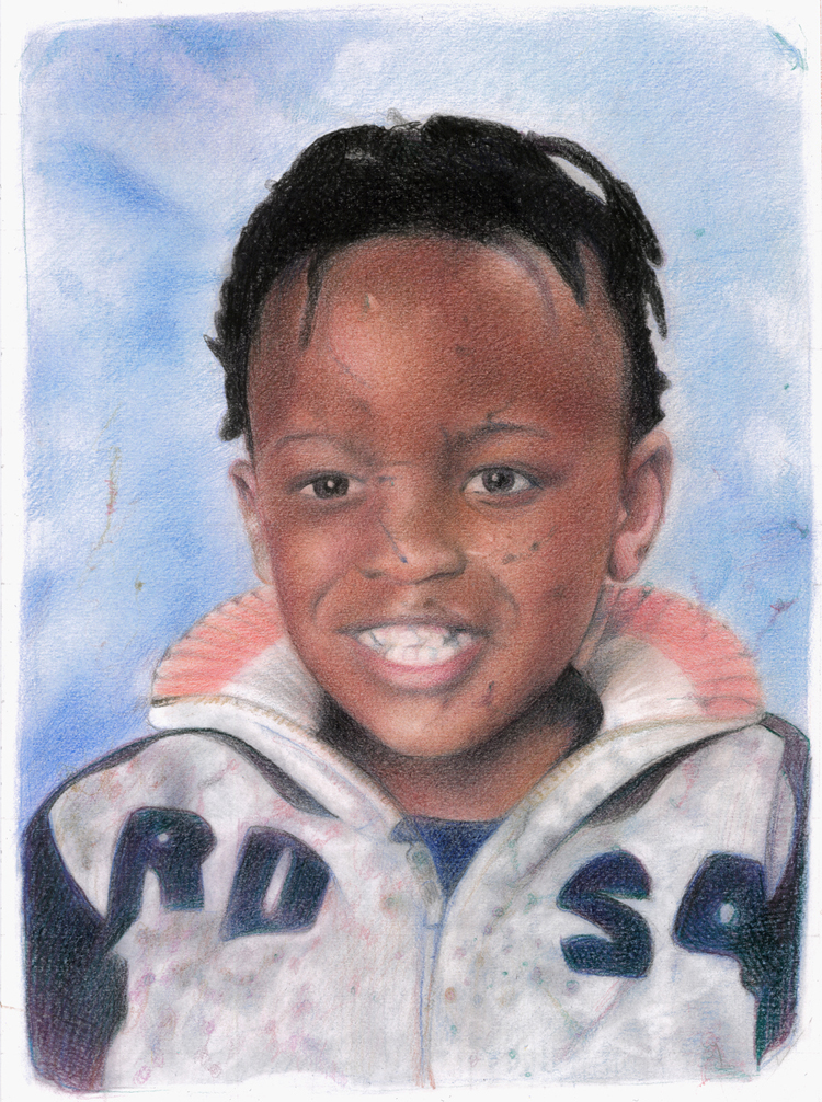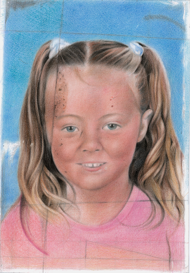 Pasfoto’s die ik op straat vindt nagetend met kleurpotlood.