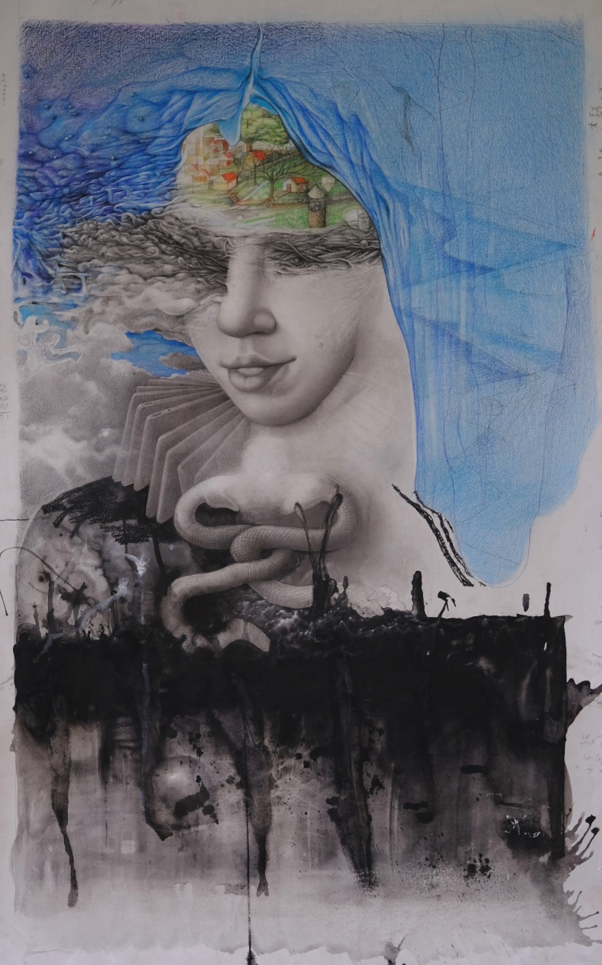 Gemengde techniek op paiper