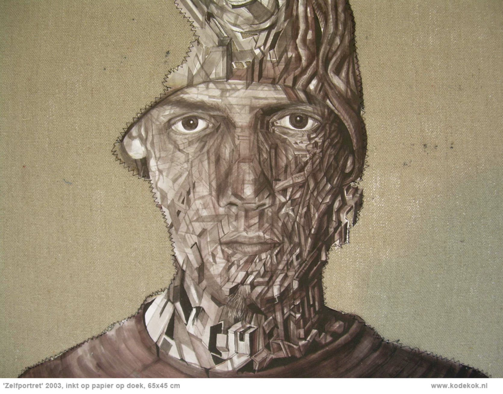 Inkt op papier, genaaid op linnen